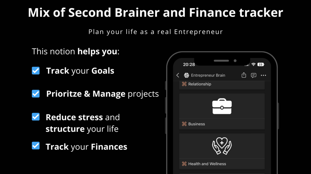 - Comprehensive Life Tracking:Track every aspect of your life effortlessly – from tasks and projects to your financial journey. The Life Planner brings together the functionalities of the Finance Tracker and Second Brainer to provide a holistic approach to life organization.